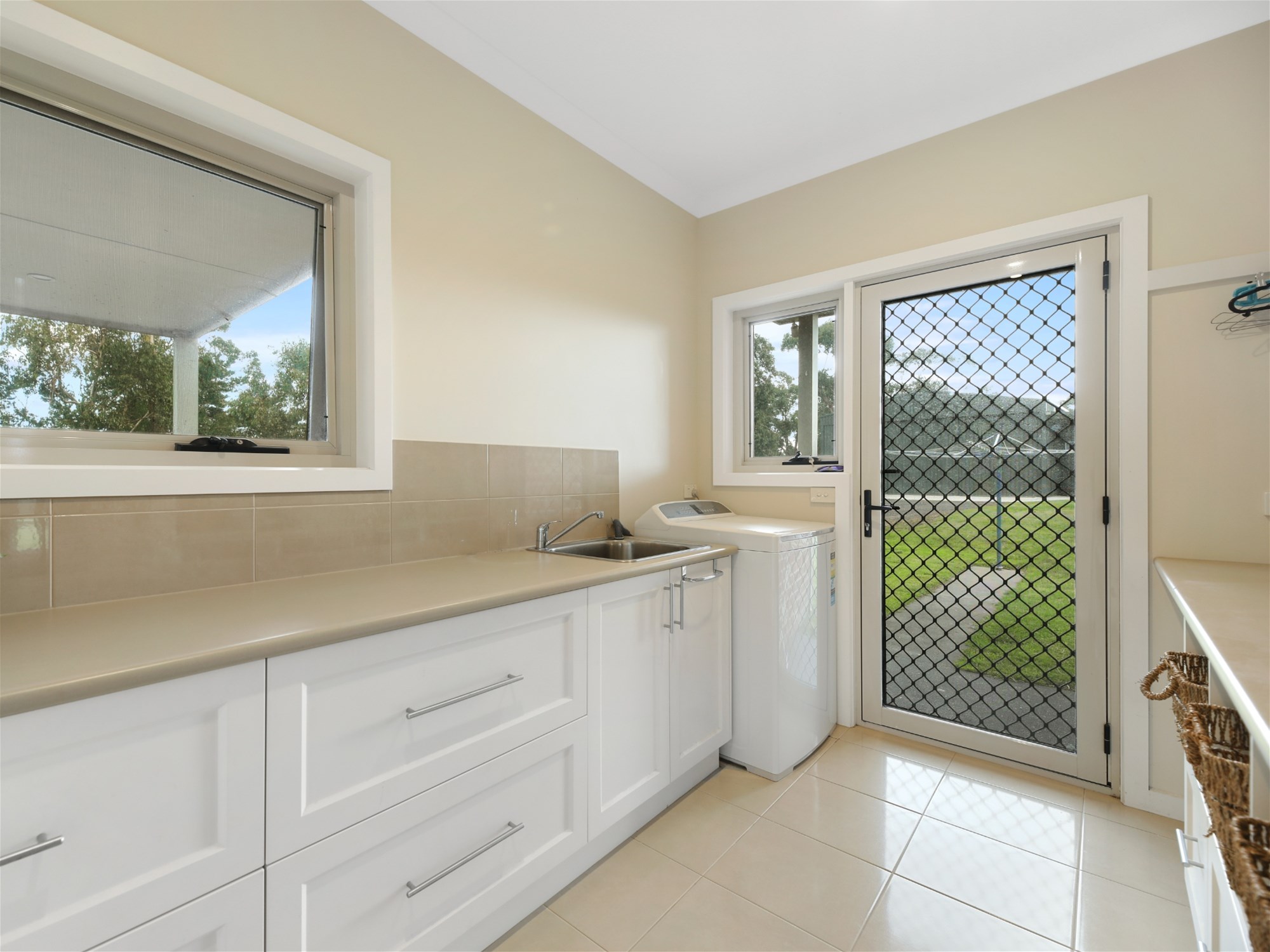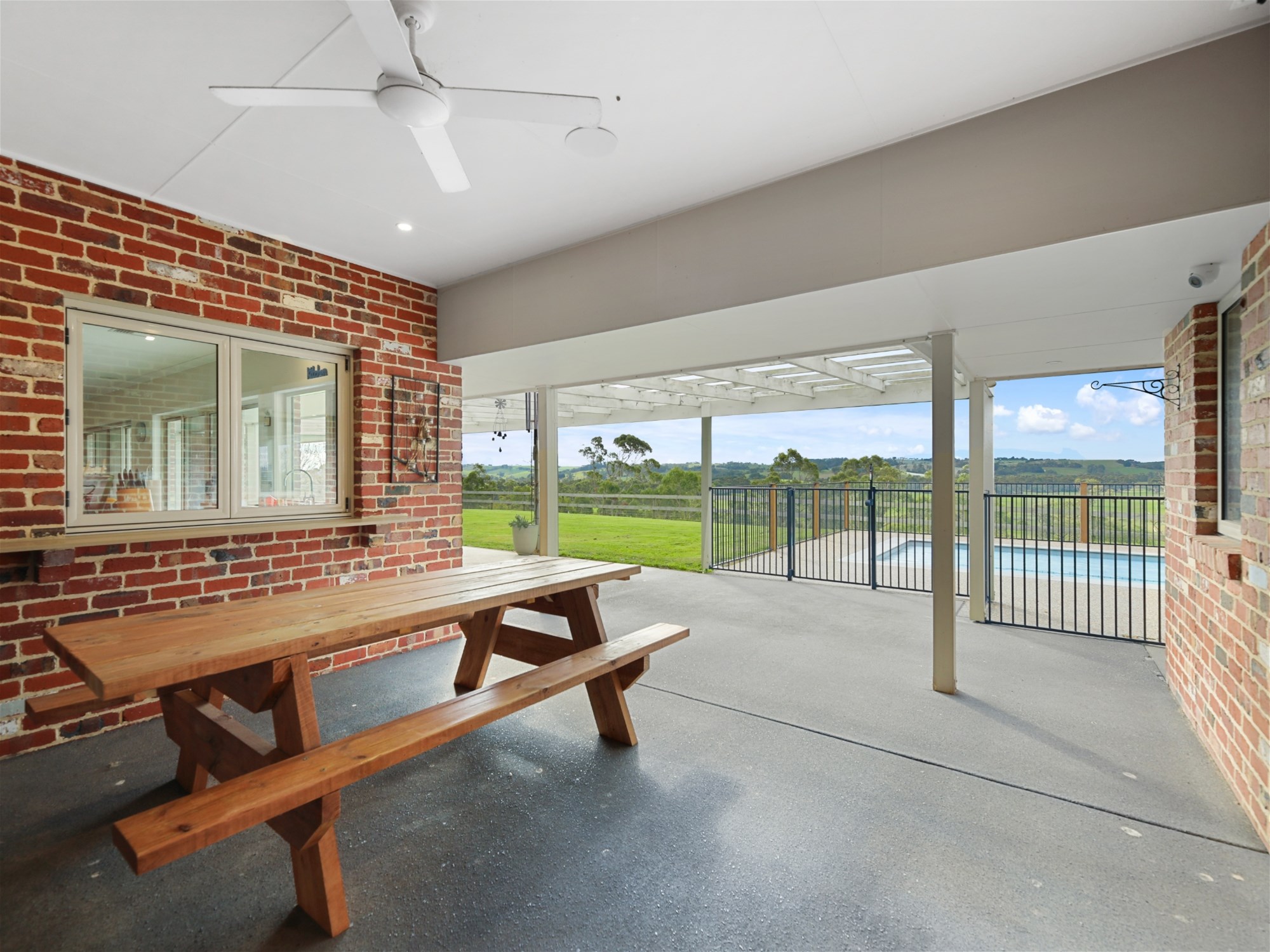 From the moment you arrive, the sweeping rural views across the Tarwin River flats and the surrounding lush green hills invite you to relax and unwind. Inside, the home is a masterpiece of thoughtful design and quality craftsmanship, showcasing an expansive open-plan living and dining area that seamlessly flows to an alfresco space, complete with a recently installed in-ground pool. The light-filled interiors include a designer kitchen equipped with premium appliances, a massive butler’s pantry, and abundant storage, making it ideal for both everyday living and entertaining. The kitchen is a standout feature of the home with its stunning Falcon freestanding stove and oven, featuring a 900mm gas cooktop with five burners and dual electric ovens, along with a Miele dishwasher and a window above the sink providing natural light and views of the alfresco area.