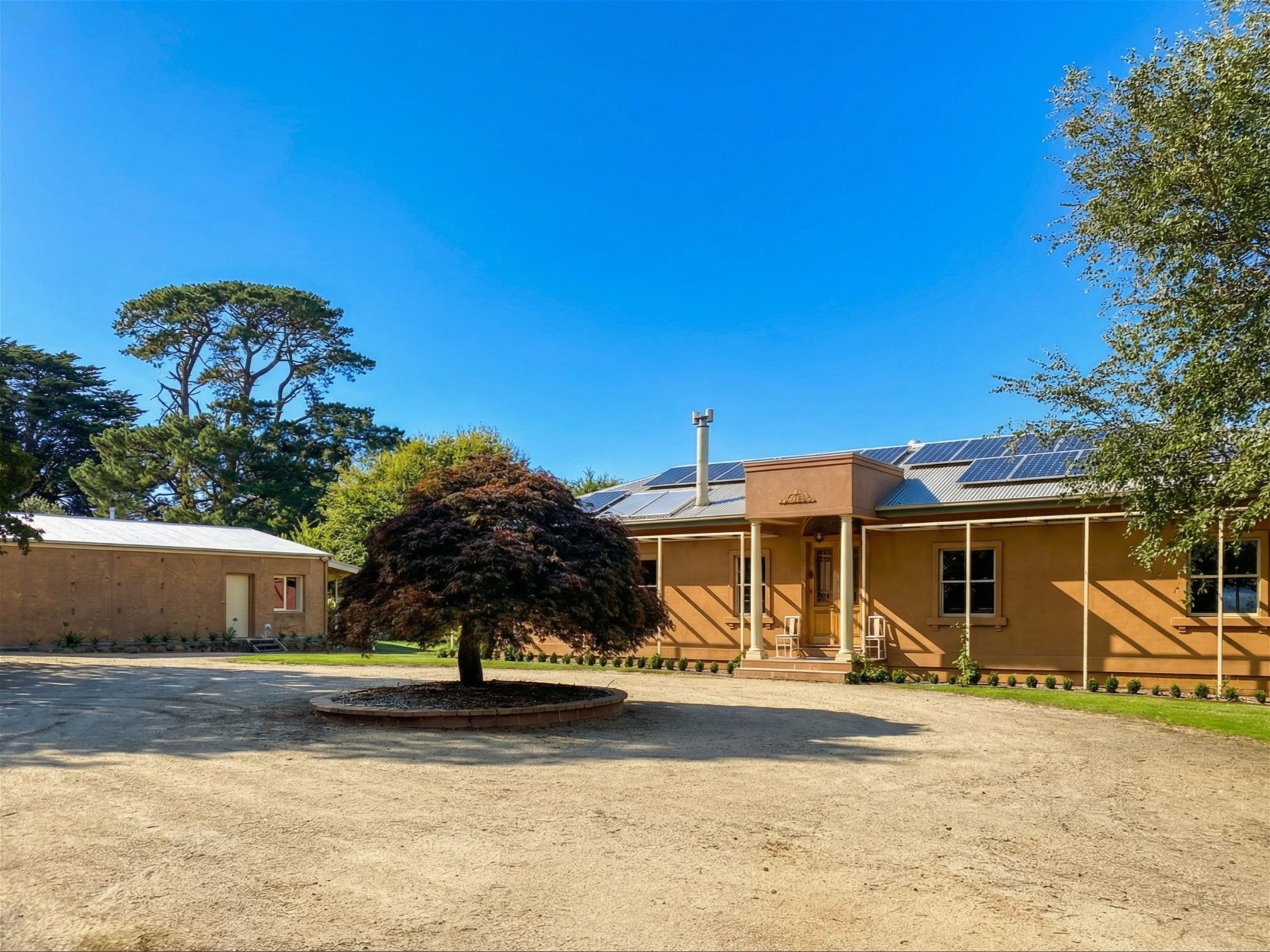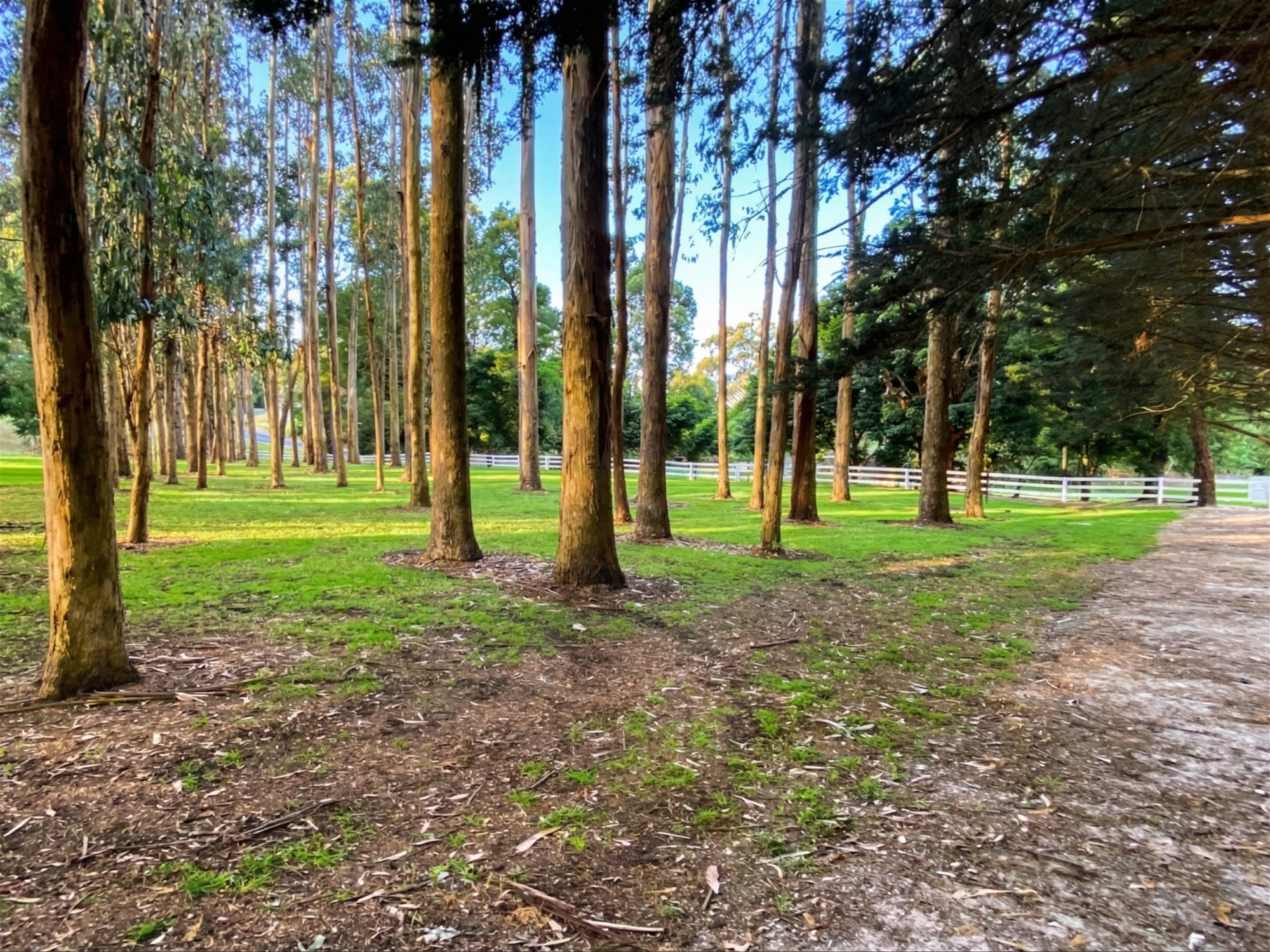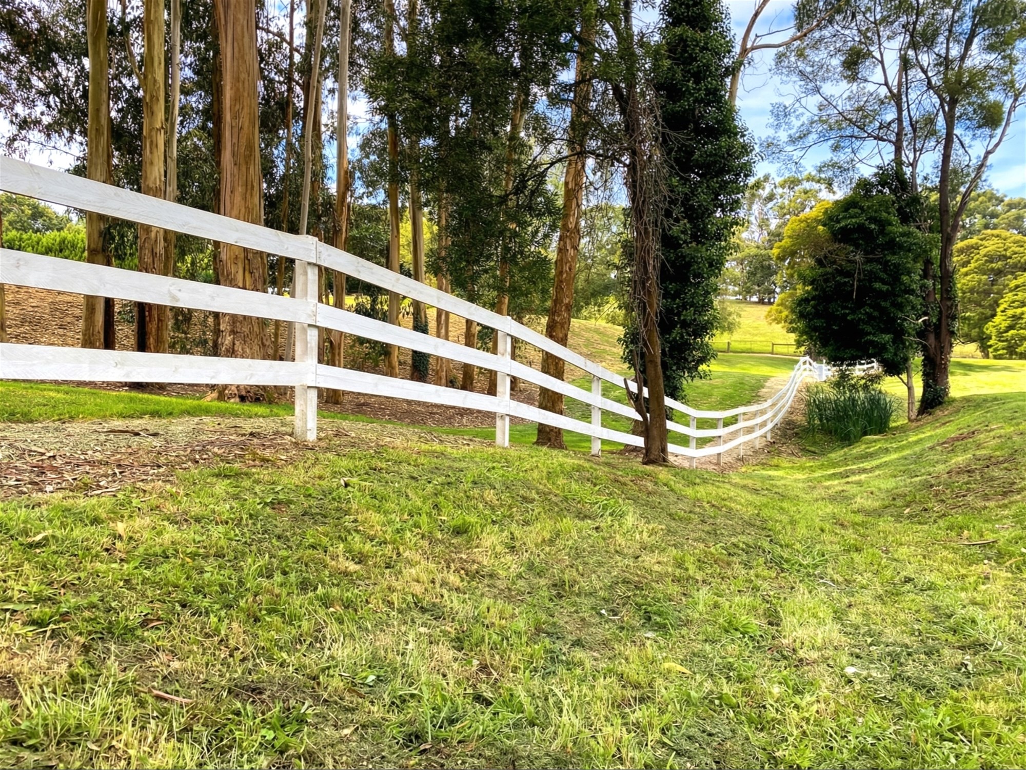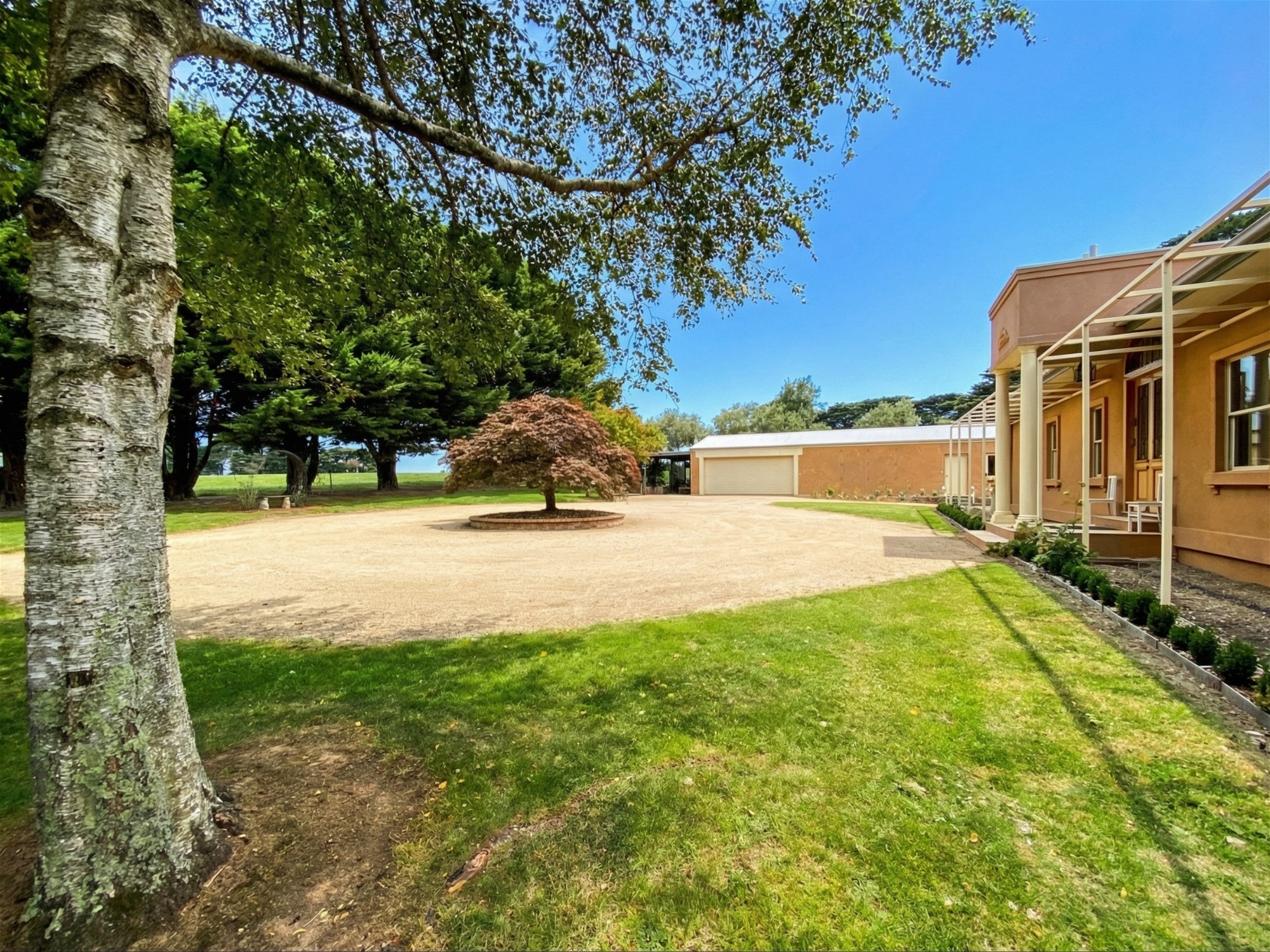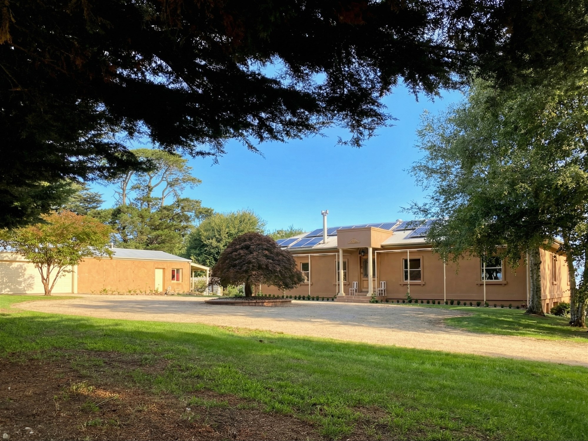 Framing the property is an approximately 530-metre private walking and running track, tracing the boundary through open lawn, established trees and shaded stretches beneath the cypress canopy. It is an unusual and highly appealing feature that adds both lifestyle value and a quiet sense of retreat, especially for buyers drawn to the idea of wellness, privacy and connection to the outdoors.