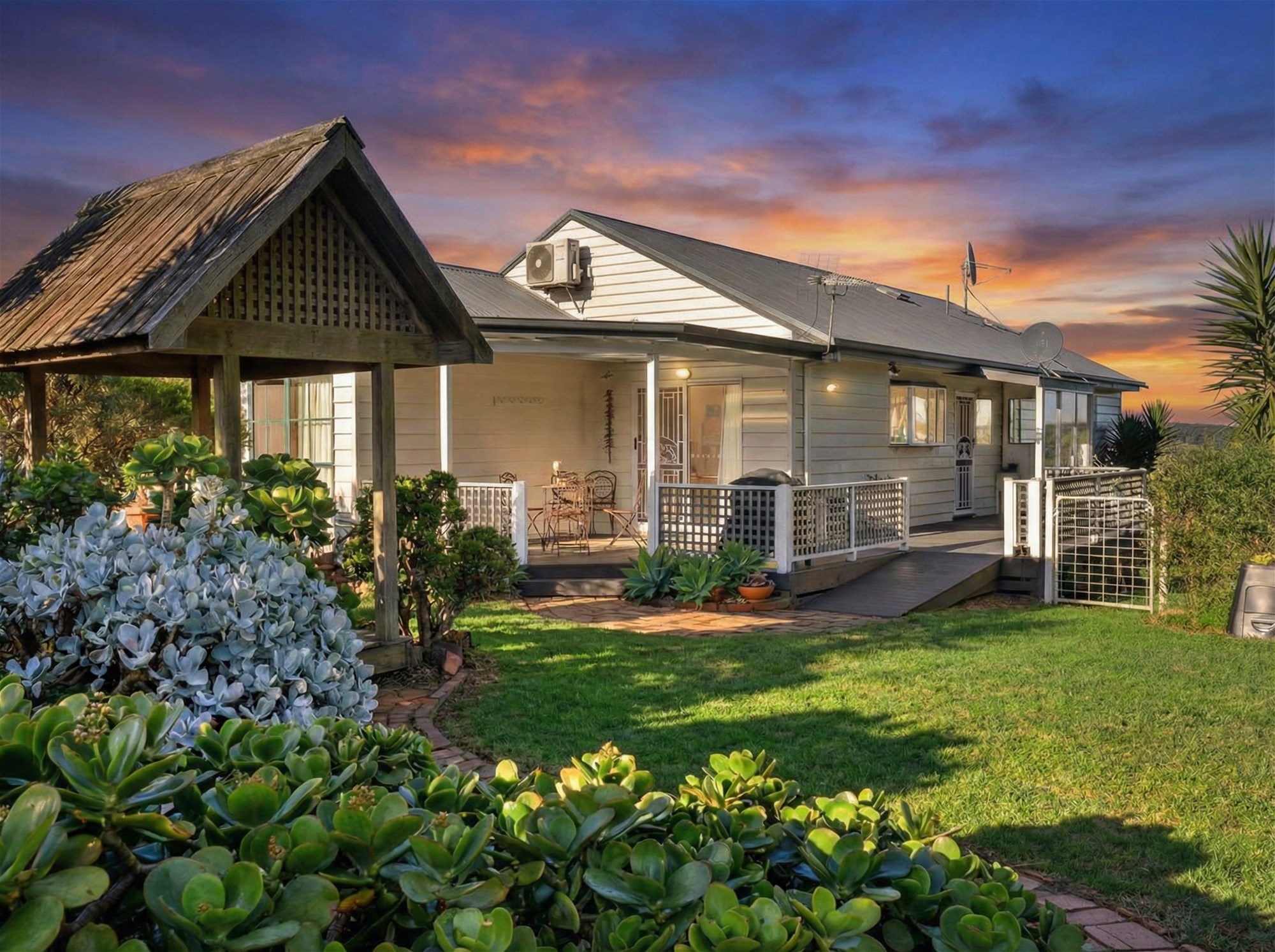 Stepping outside, 'Findlatree Cottage' transforms from a charming home into a versatile hobby farm or manageable acreage retreat. The rear entertainment deck overlooks established gardens filled with mature succulents, lavender, and manicured lawns, offering a private space for alfresco dining. The property is exceptionally well-equipped for self-sufficiency and animal husbandry. The land features fenced paddocks suitable for horses or sheep, supported by a dam and excellent water storage capacity to ensure the grounds remain lush year-round.