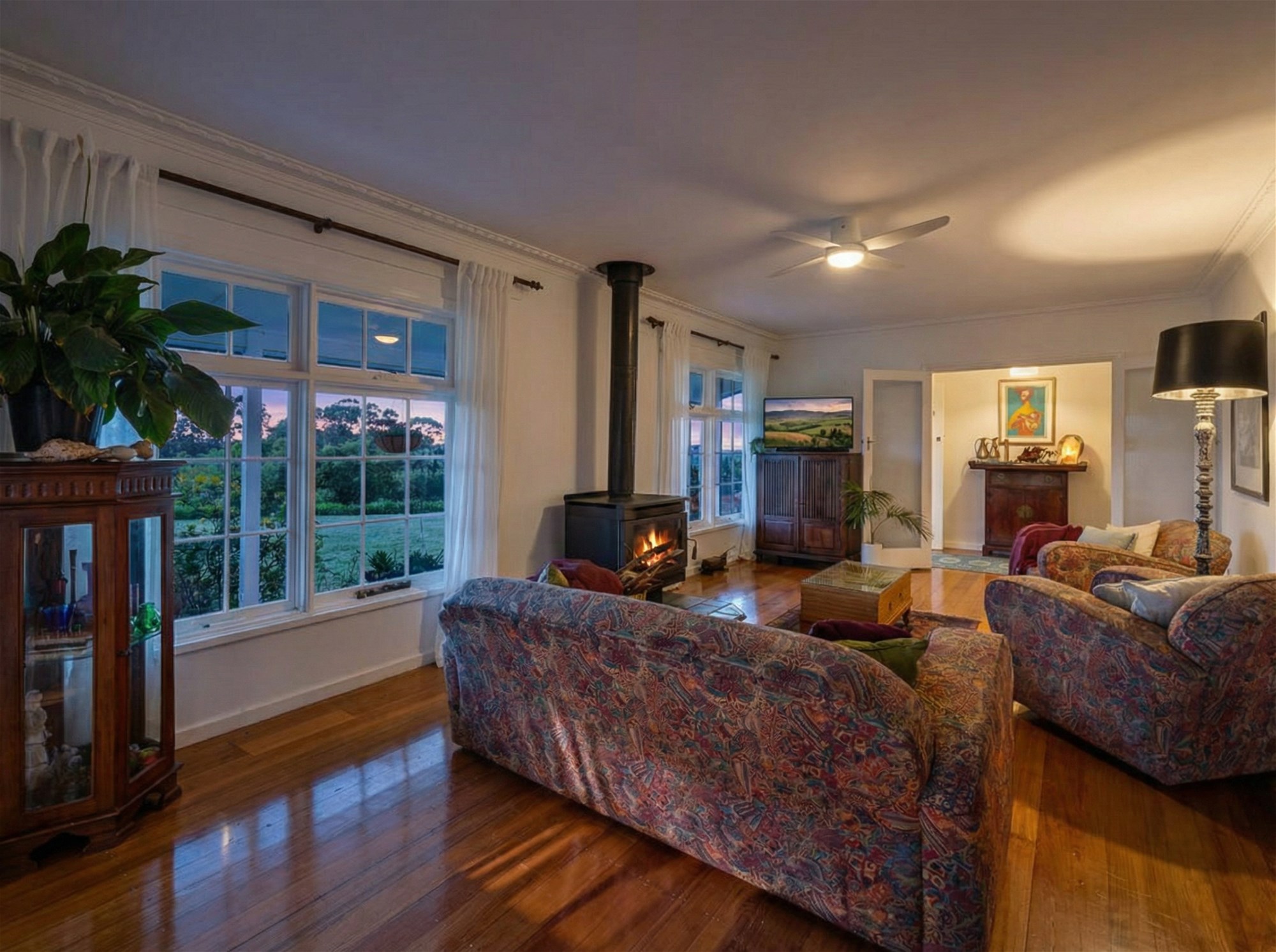 The residence exudes an immediate sense of warmth and welcome. A generous wrap-around verandah encircles the home, providing a classic Australian architectural element that serves as the perfect vantage point for morning coffees or evening wines as the sun dips below the horizon. Stepping inside, the interiors are defined by gleaming polished timber floorboards that reflect the natural light flooding in through expansive glazing. The layout has been thoughtfully designed to maximize the breathtaking outlooks, ensuring a seamless visual connection with the surrounding landscape from almost every room.
