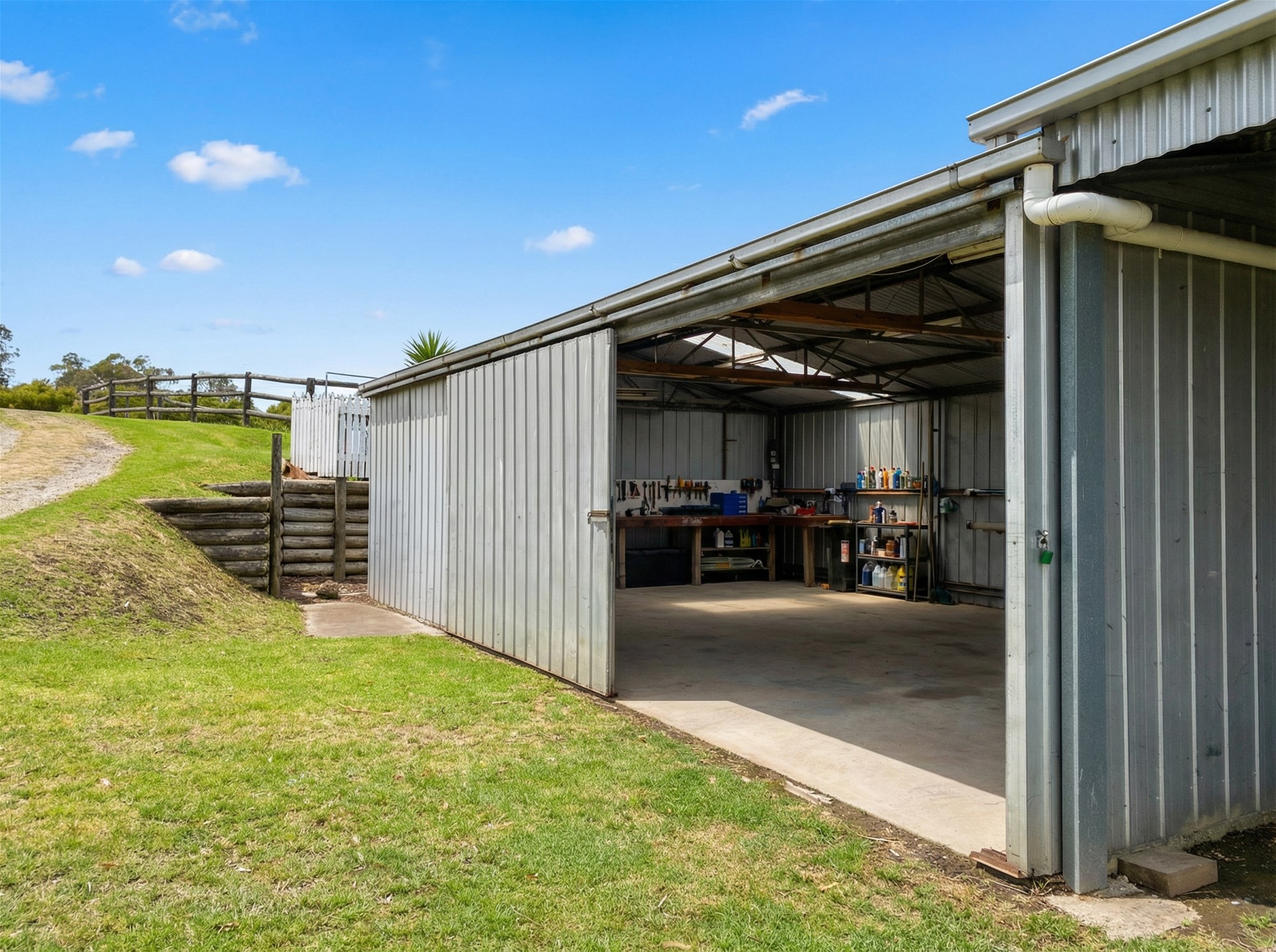 For the practically minded, the infrastructure is comprehensive. A large powered workshop provides ideal space for tradespeople, creatives or tinkering enthusiasts, complemented by a dedicated wood shed that supports day-to-day rural living. The property functions seamlessly as a working lifestyle block where you can grow your own produce, and keep livestock, all within a securely fenced environment.