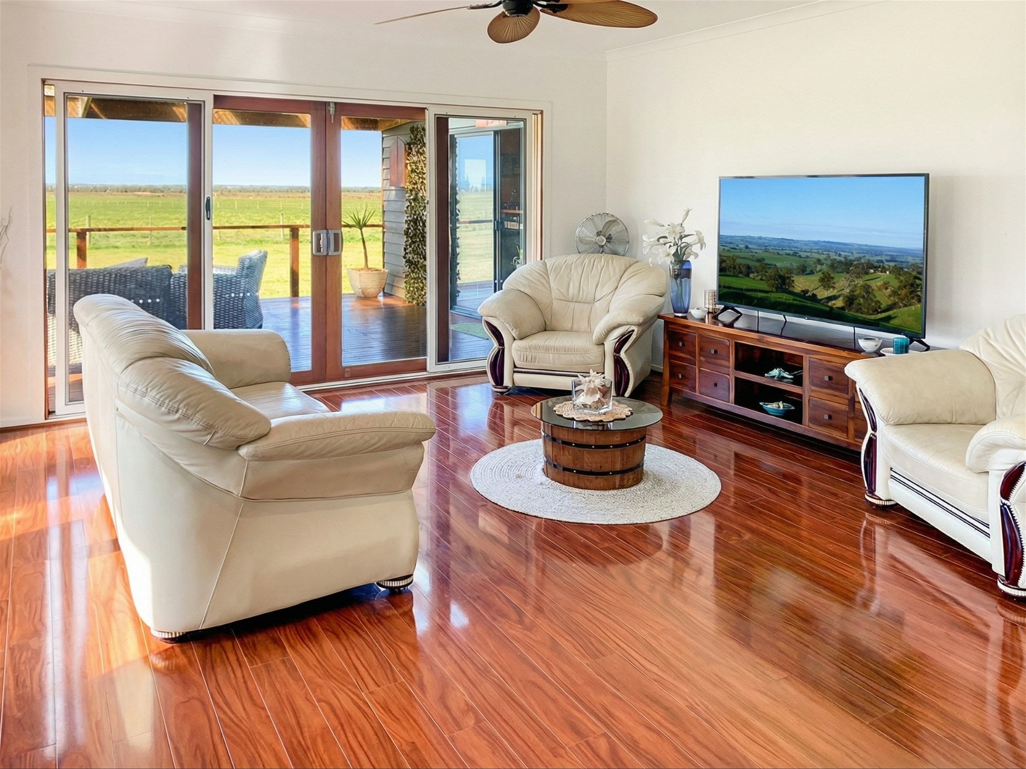 This double-storey brick home is perfect for families, horse lovers, or those seeking a slice of country living with a coastal twist. The light-filled kitchen, complete with a walk-in pantry and stainless steel appliances, seamlessly connects to the dining area, making family gatherings a breeze. The spacious living area flows out to the wrap-around pergola and deck, providing the perfect spot for morning coffee or evening drinks.
