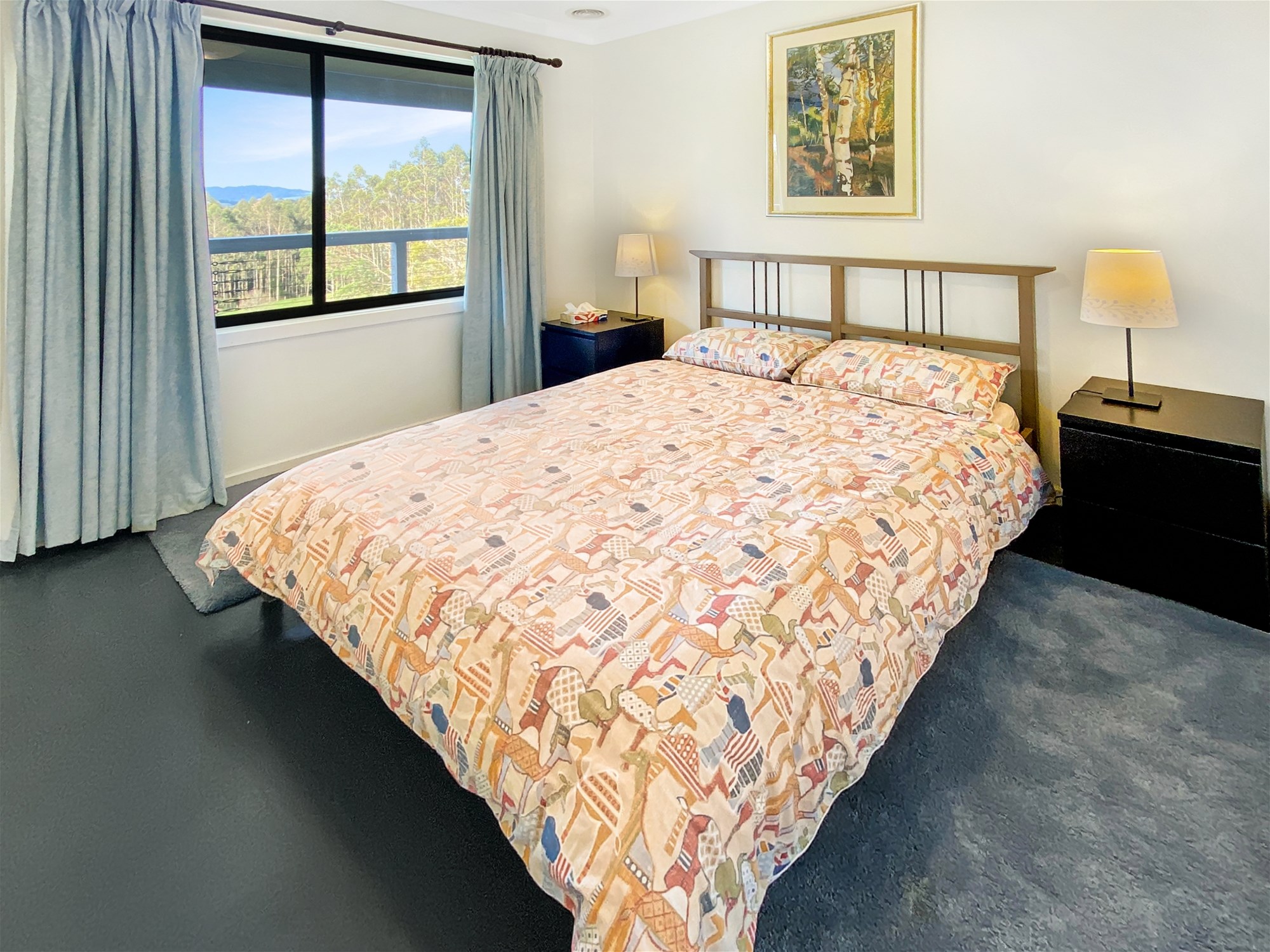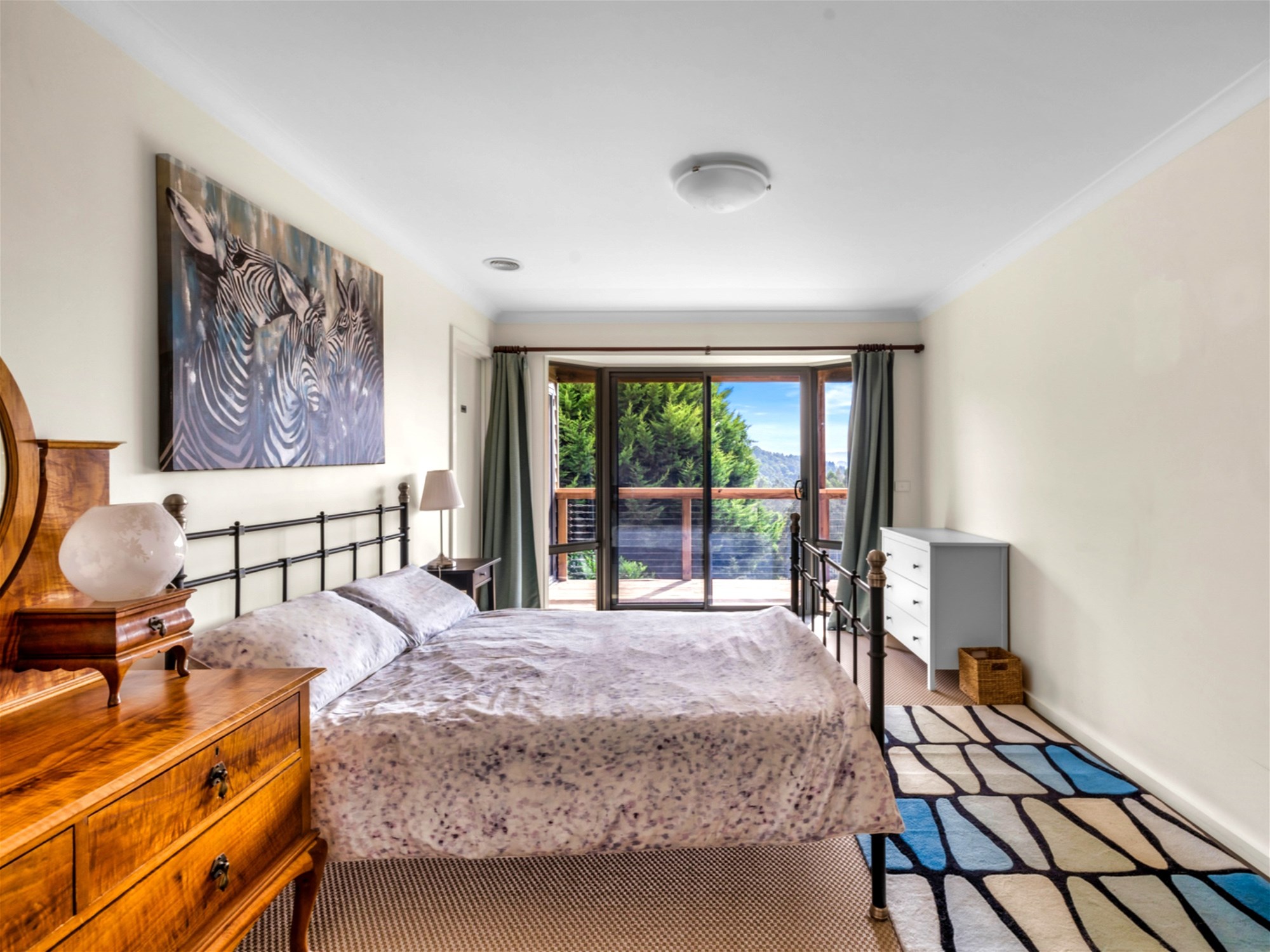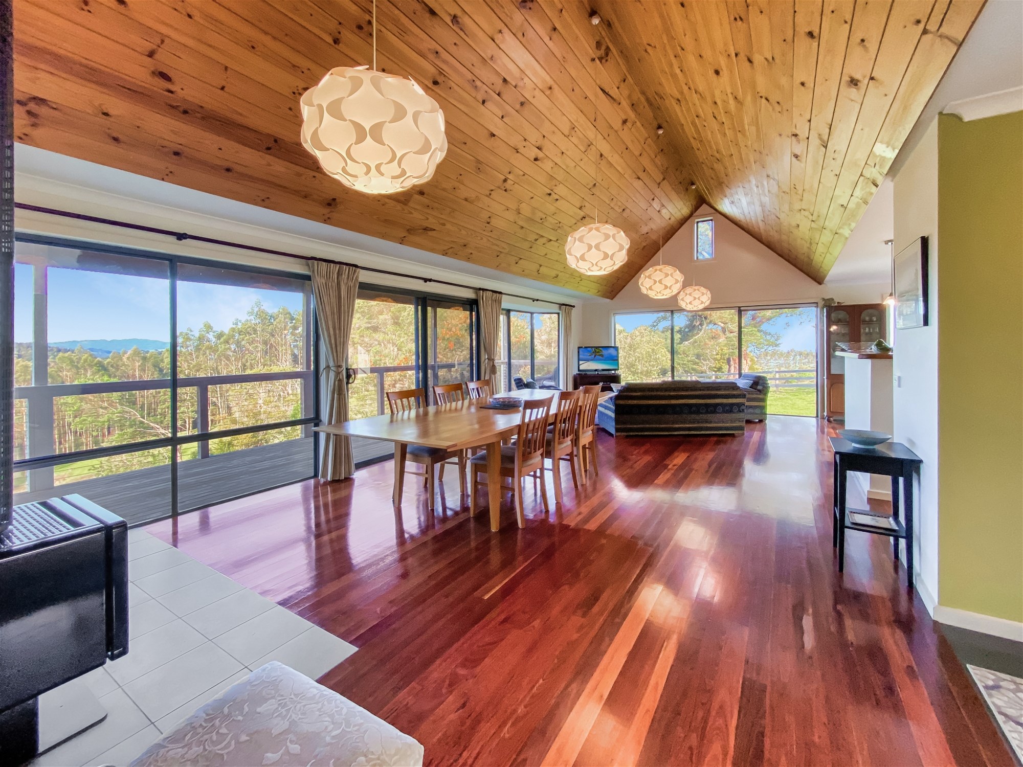 From the moment you step inside, the light and warmth of the home are immediate. Polished timber floors lead through expansive open-plan living and dining areas where full-height windows draw the landscape indoors. The vaulted ceilings add a sense of scale while framing spectacular sunsets over the hills. A wood heater and reverse-cycle climate control ensure year-round comfort, and the seamless connection between interior and exterior spaces makes entertaining effortless. The kitchen is both stylish and functional, with a walk-in pantry, gas cooking, dishwasher and island bench, all perfectly positioned to take in the surrounding views.